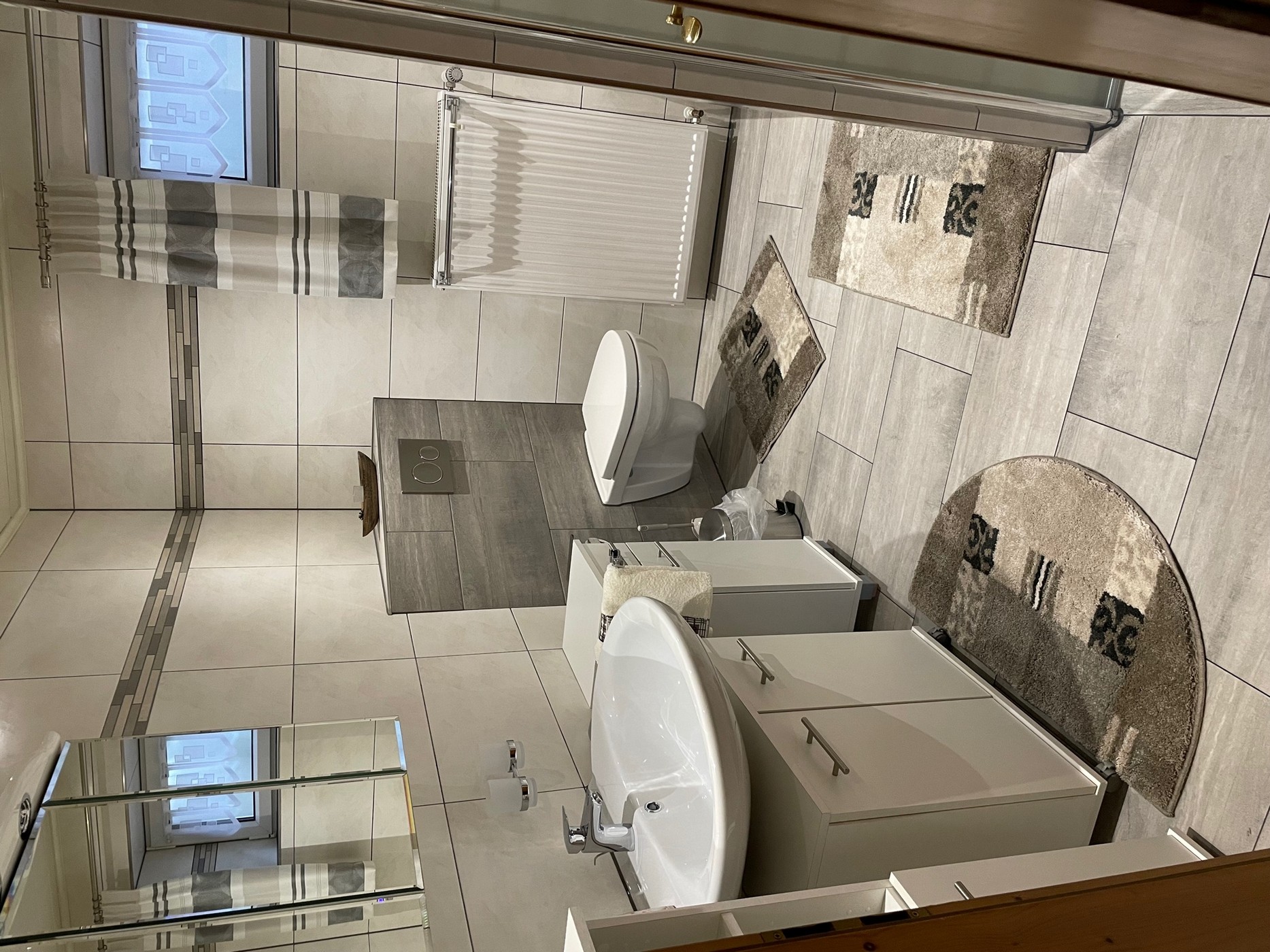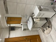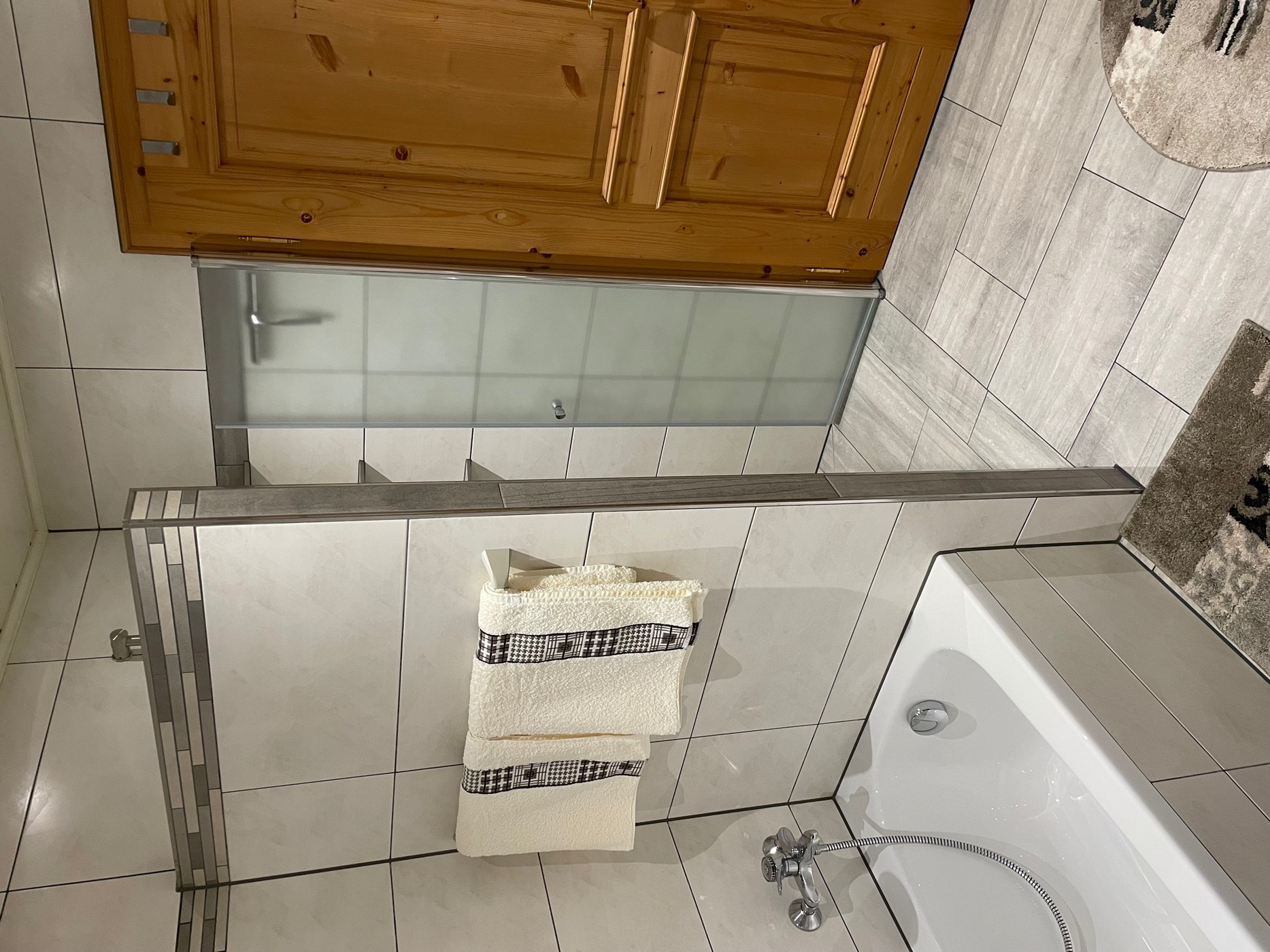 Das Badezimmer ist ausgestattet mit Dusche, Badewanne und WC.